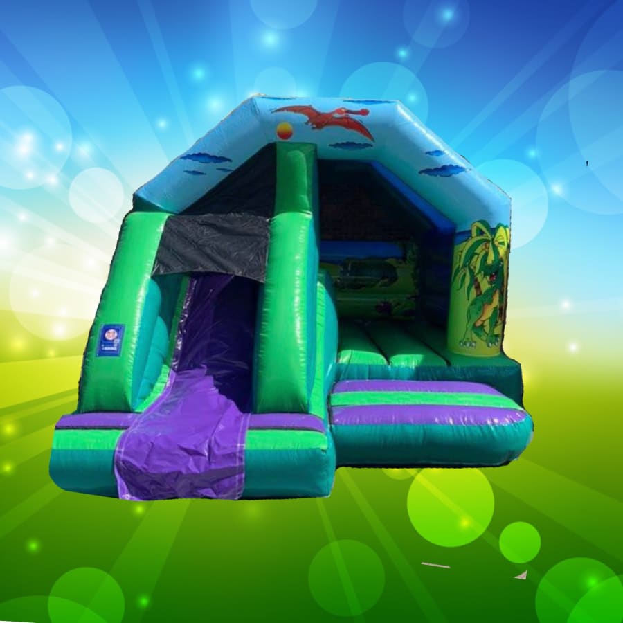 This is one of our new themes so we have decided to pull out all the stops ands dazzle you with something different to all other hirers in the West Midlands, Not only does this dinosaur castle look amazing it has the added fun of a 4ft slide to the front that is easy for even the littlest of legs to climb up the slide and wiz down. This space saving combo fits in majority of gardens due to the short front slide giving you a straight view of the castle and the slide area.