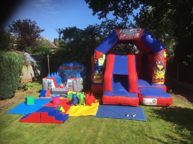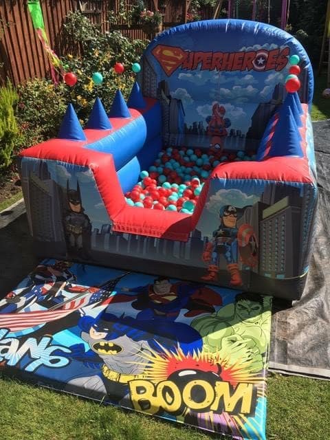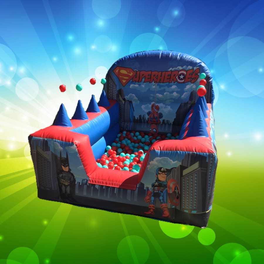 Why not add on our new Superhero Ballpool with added air jugglers to your bouncy castle and go all out with the fun!