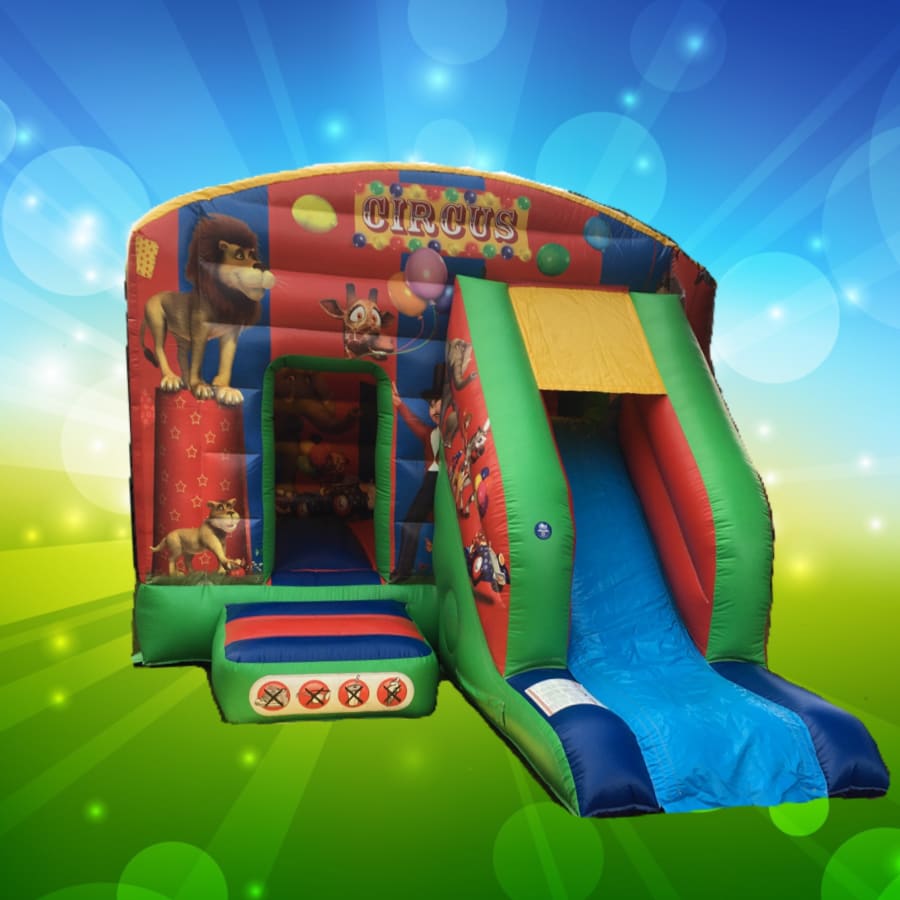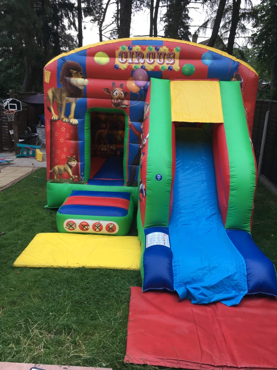 Our circus bounce and slide is a boxed castle so is also mostly covered in showers!