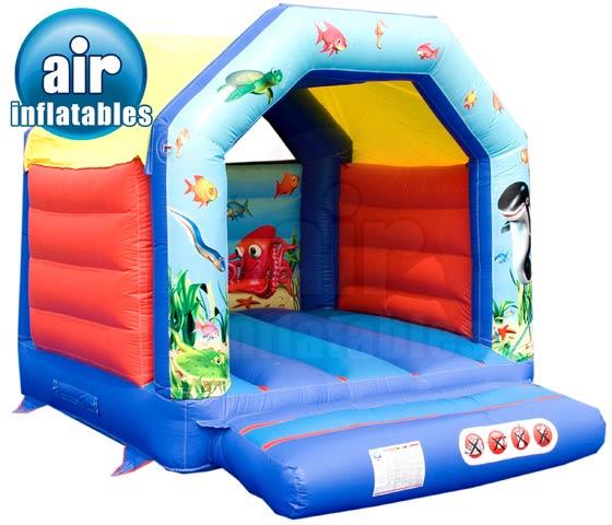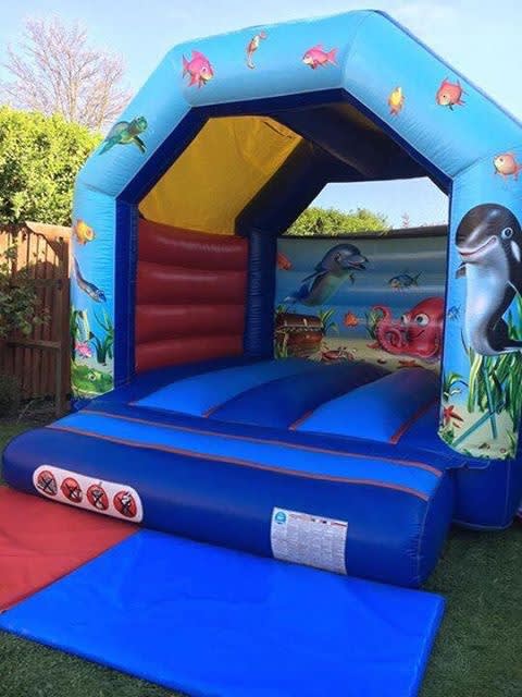 One of our smallest of castles in our fleet so if you are stuck for space this one should suit perfectly (10ft wide x 10ft back), Suitable for both the younger and older children this lovely little castle has a under the sea theme to match our amazing Under the sea Ob course.